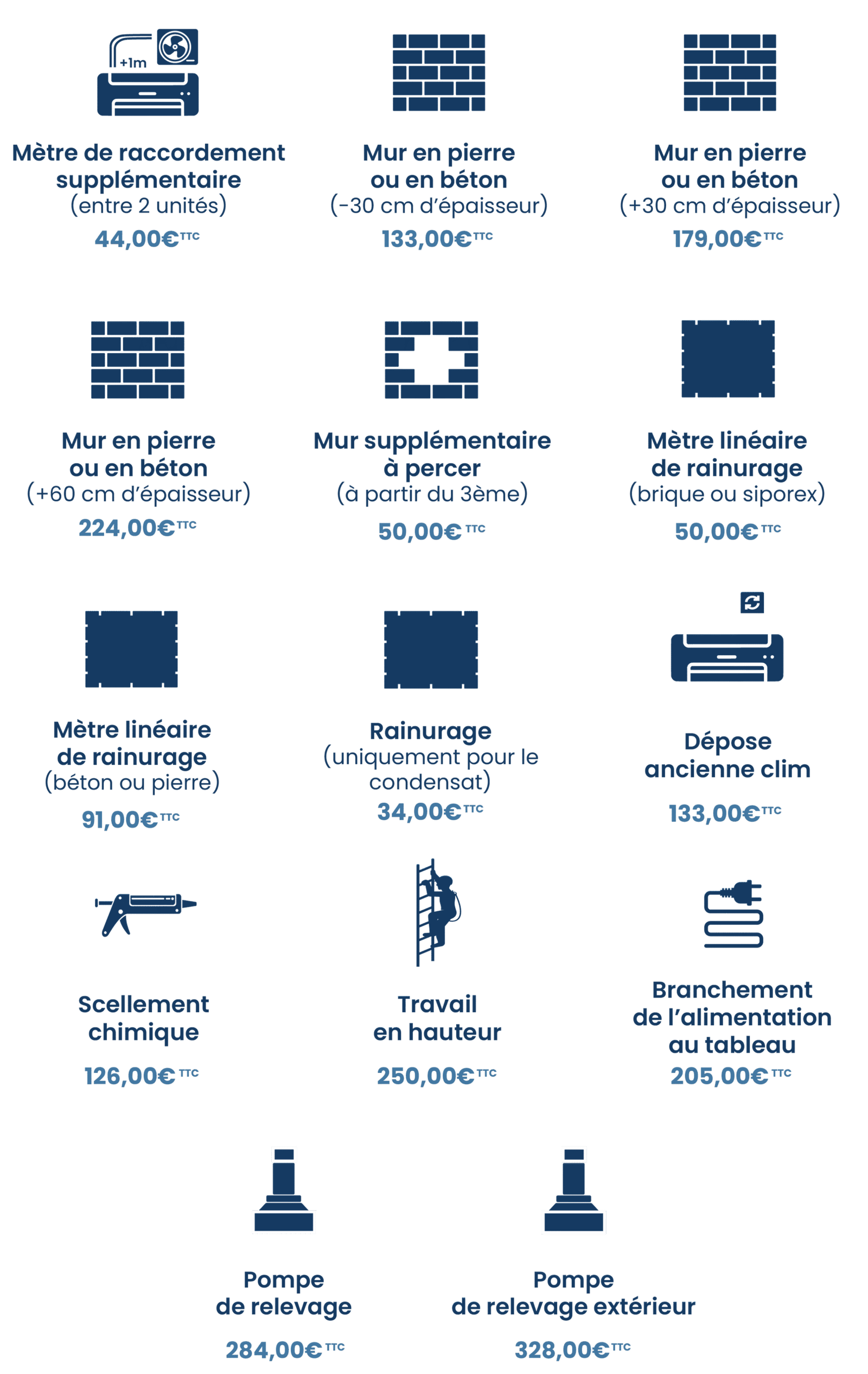 Nos travaux supplémentaires à prévoir en fonction de votre intérieur et de la complexité de votre installation ⬇️